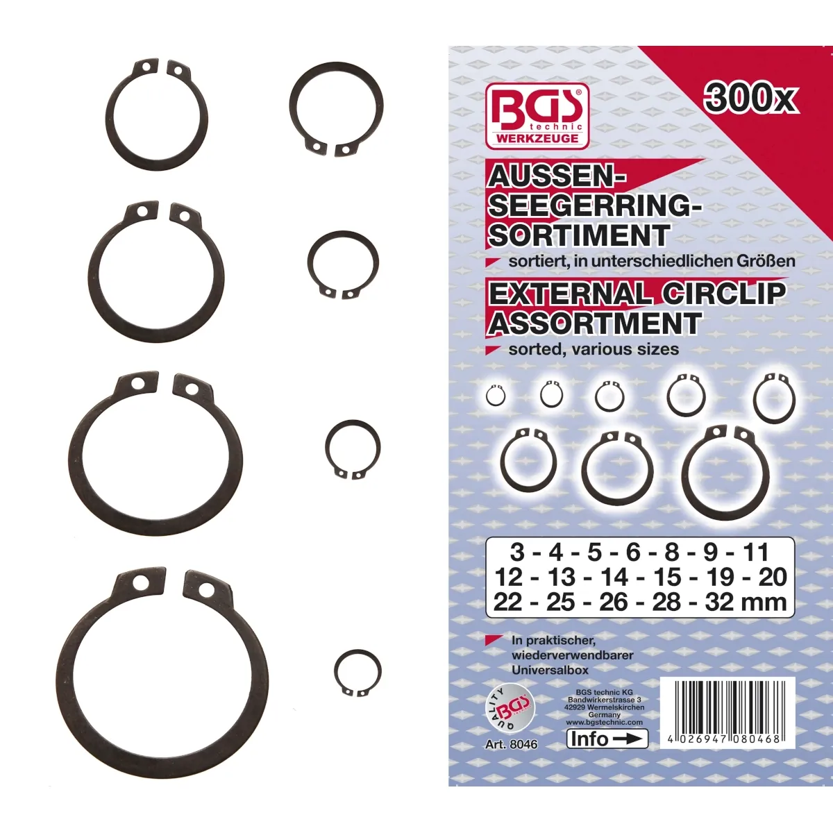 300 PIEZAS ANILLOS EXTRIORES, 3-32 MM