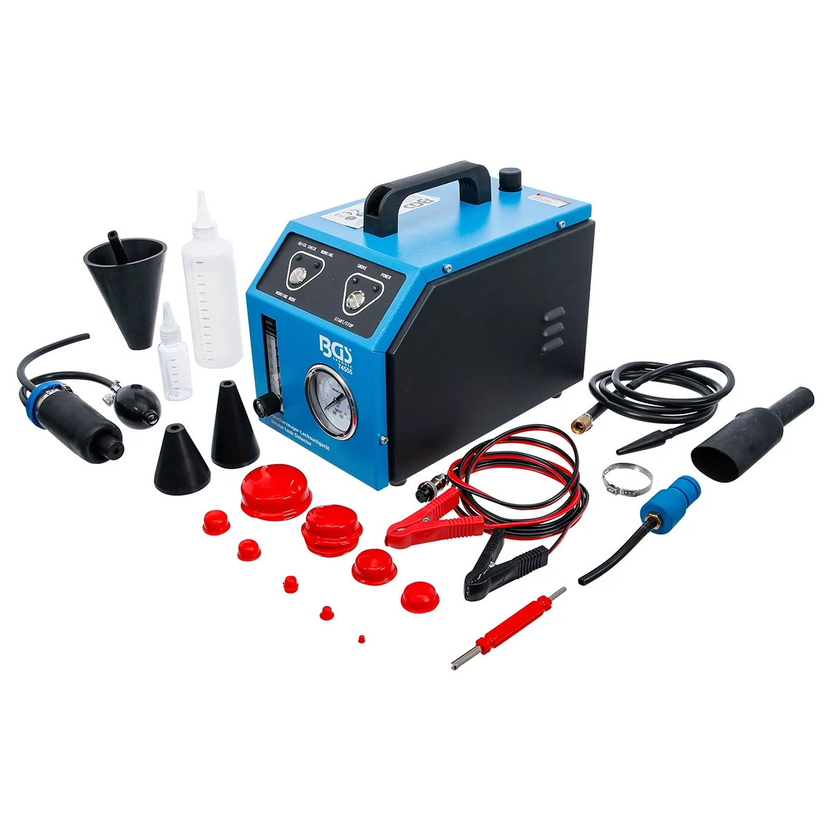 El Detector de fugas por generador de humo BGS 74555 es una herramienta esencial para talleres automotrices que requieren localizar de forma rápida y precisa fugas en sistemas de admisión, escape, EVAP, conductos y tuberías.