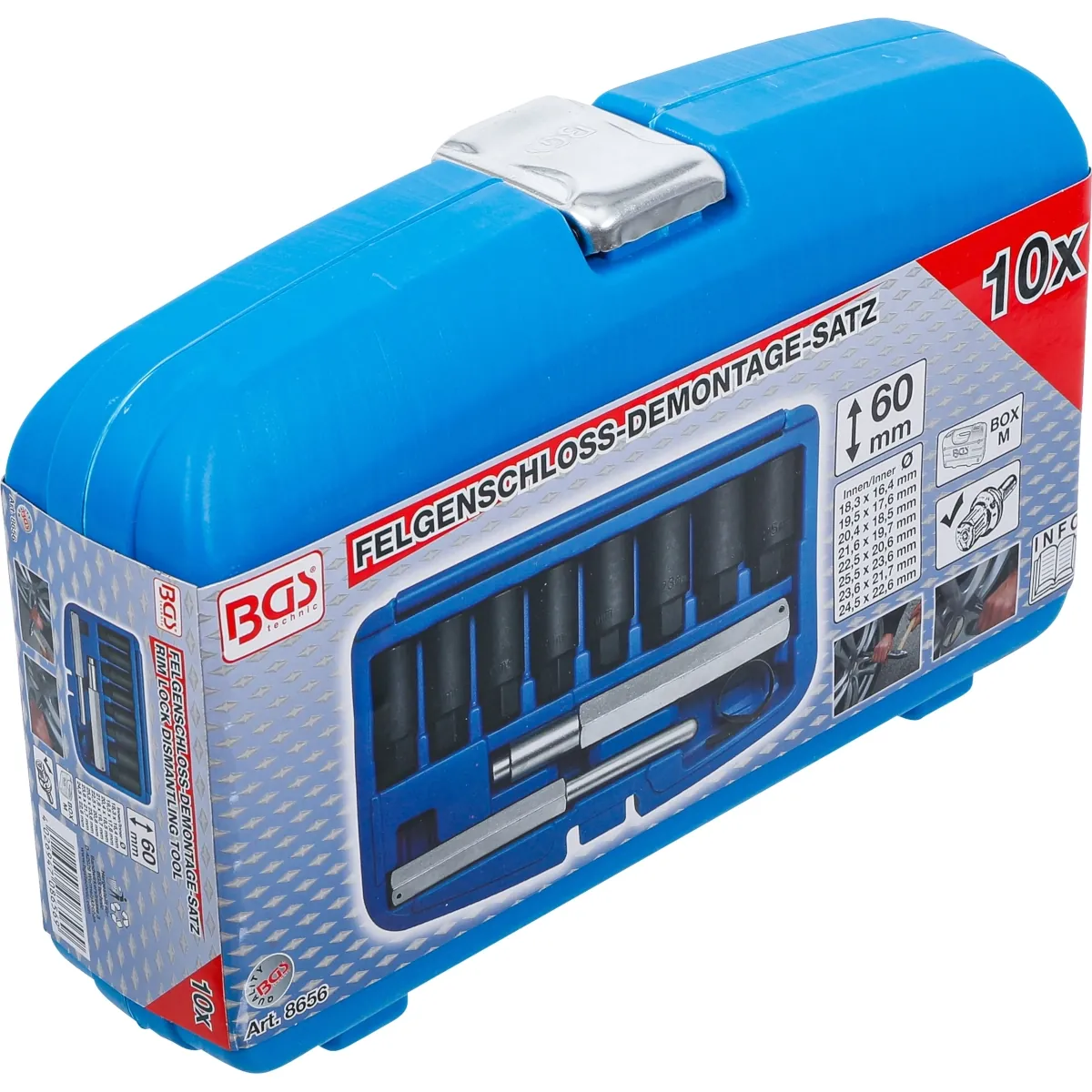 8 x dados cónicos de desmontaje, longitud 60 mm, con los siguientes diámetros interiores