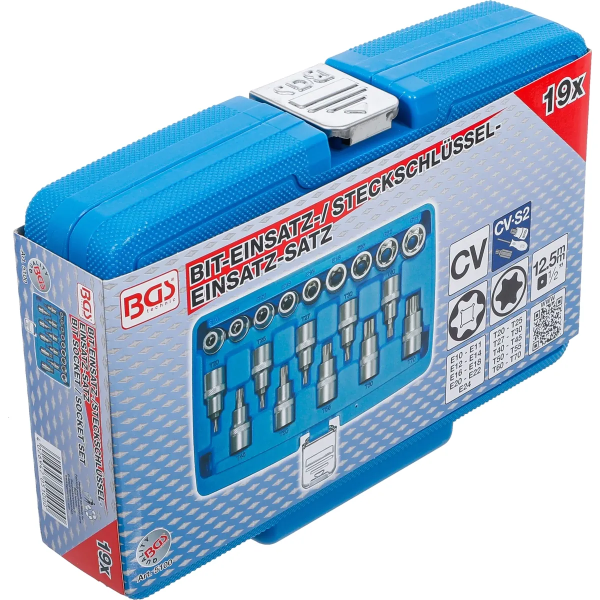 DADOS, entrada 12,5 mm (1/2″): E-Torx E10 – E11 – E12 – E14 – E16 – E18 – E20 – E22 – E24