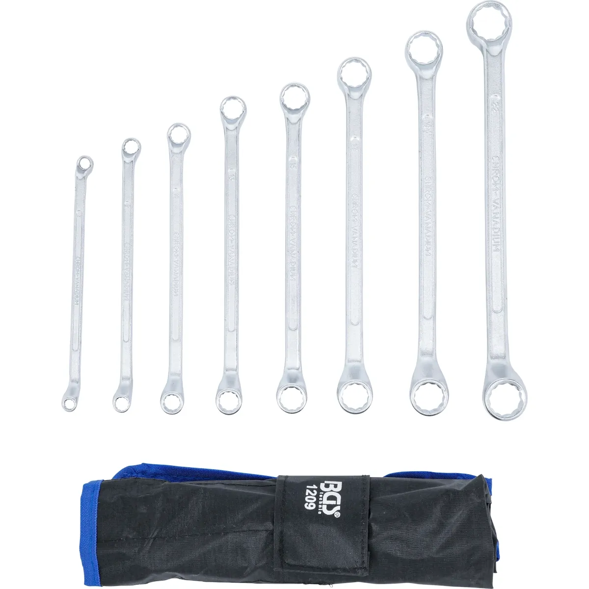 Llave de estrella doble, larga acodada, 8 x 9 mm
