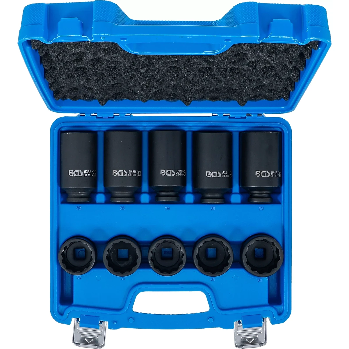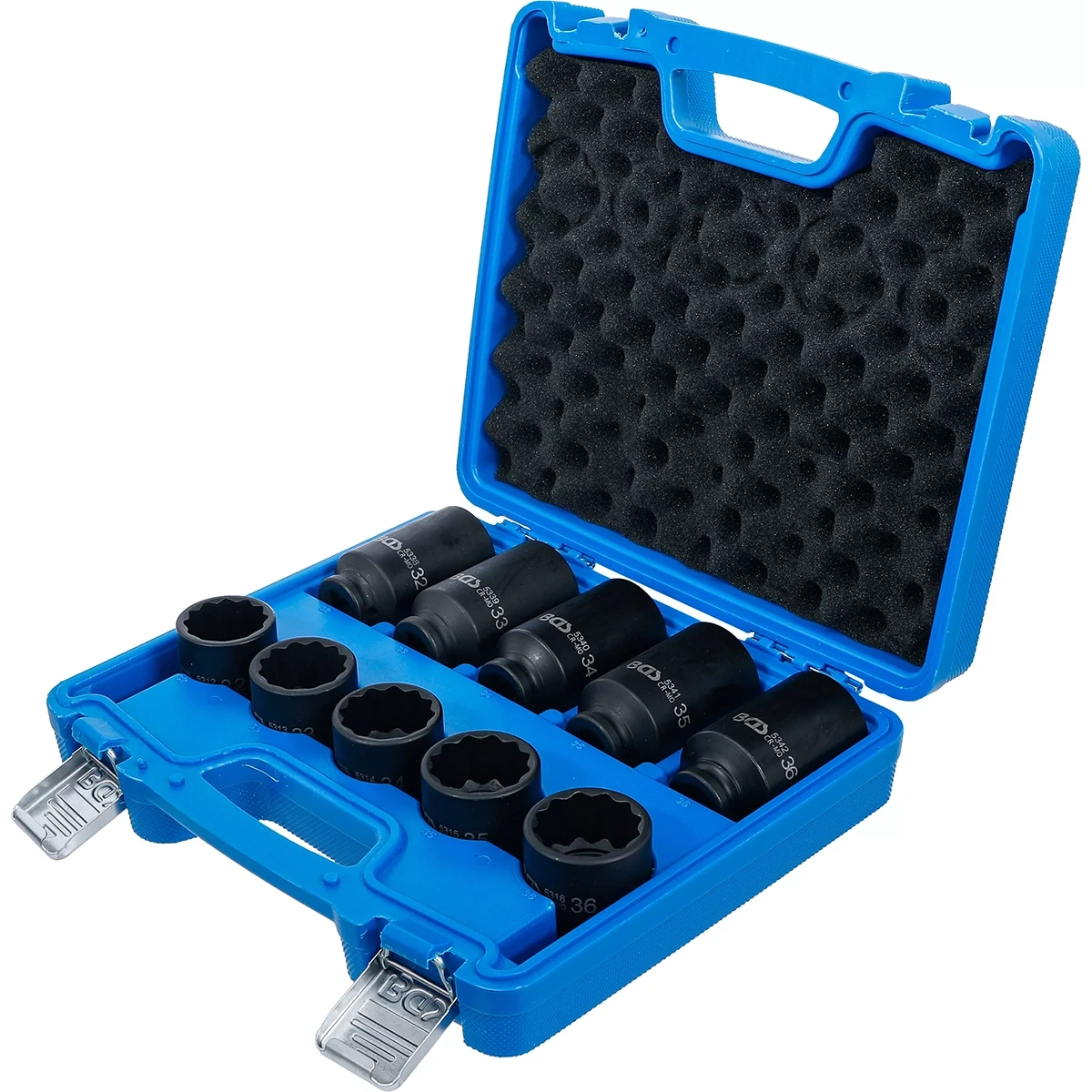 JUEGO DE DADOS DE IMPACTO | 12 CARAS | ENTRADA CUADRADO INTERIOR 12,5 MM (1/2”) | 32 – 36 MM | 10 PIEZAS