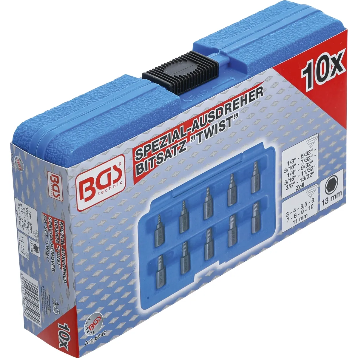 puntas extractoras con entrada en los siguientes tamaños 3 – 4 – 5,5 – 6 – 7 – 8 – 9 – 10 – 11 mm