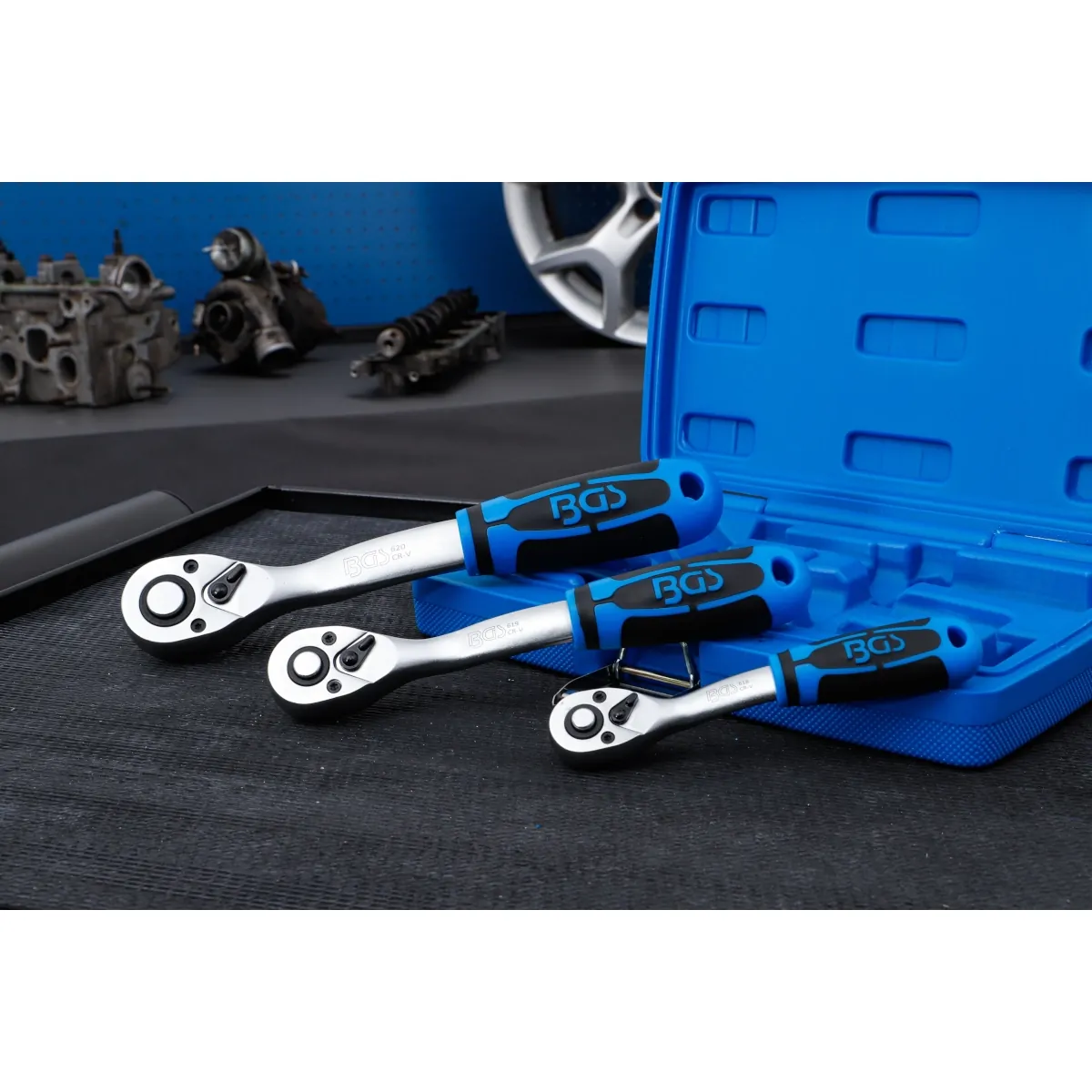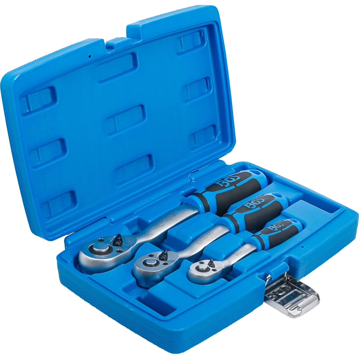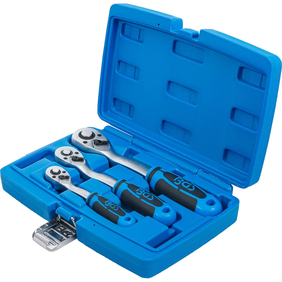 JUEGO DE MATRACAS REVERSIBLE 1/4″ / 3/8″ / 1/2″ | 72 DIENTES | 3 PIEZAS