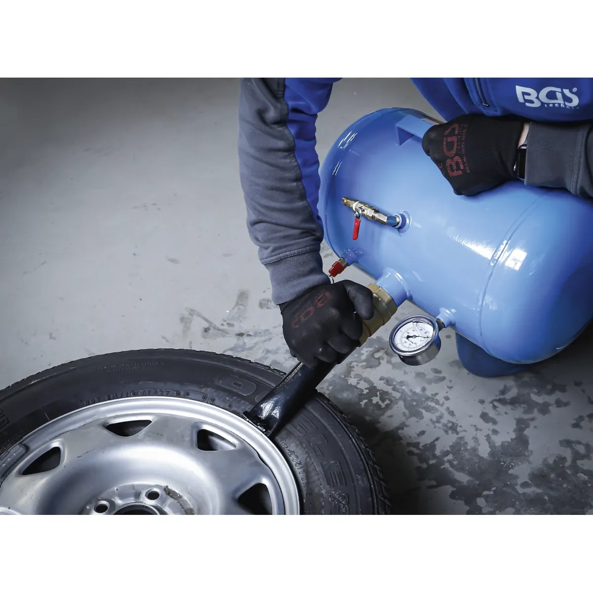 TANQUE ASENTADOR DE CEJA | DISPOSITIVO PARA EL INFLADO DE NEUMÁTICOS DE AUTOMÓVIL (BOOSTER)